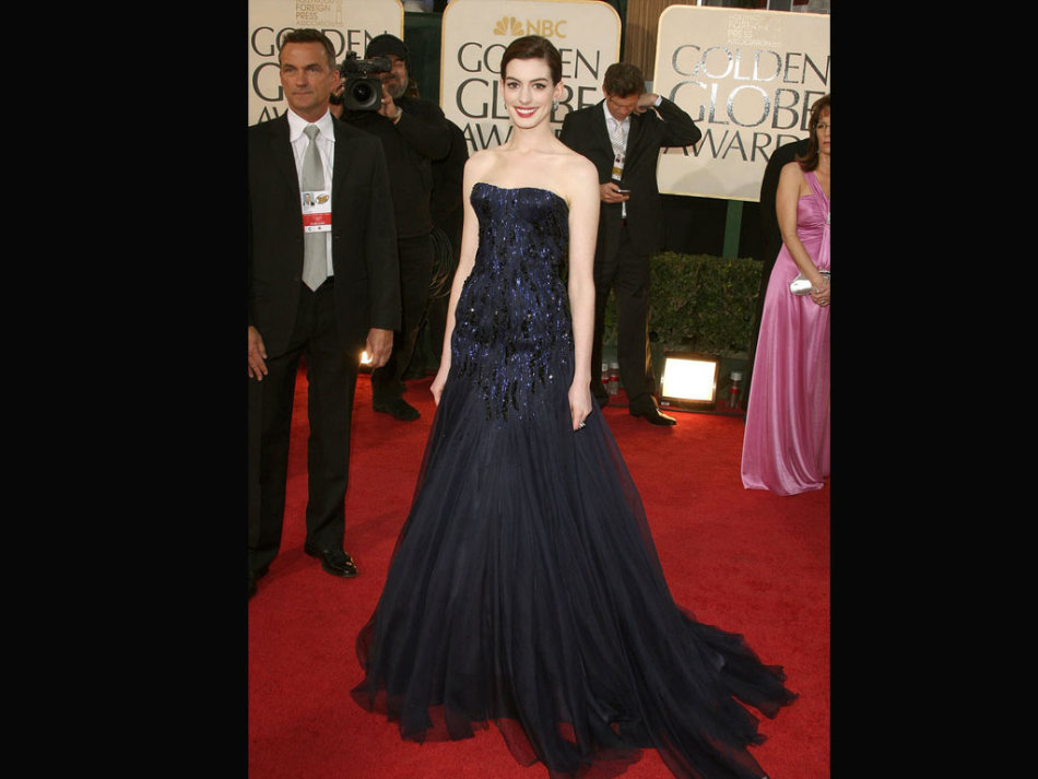 高清组图:安妮-海瑟薇宝蓝色礼服清丽典雅