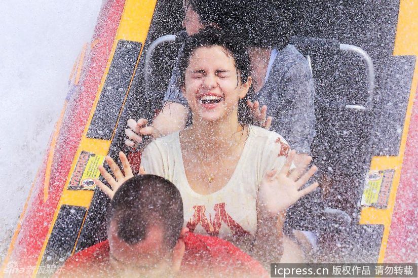 新浪娱乐讯 近日,贾斯汀-比伯女友赛琳娜-戈麦斯与朋友一起玩激流勇进,水花四溅,令她害怕得尖叫不已,但依然乐在其中,年轻人玩得就是心跳。东方IC/文并图