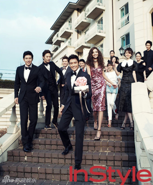 新浪娱乐讯 李秉宪、韩彩英、韩孝珠、高修等12名BH娱乐公司艺人以拍摄婚礼主题写真的方式为明年举行婚礼的公司代表孙锡宇祝福。南安宇/文 版权所有Mydaily禁止转载