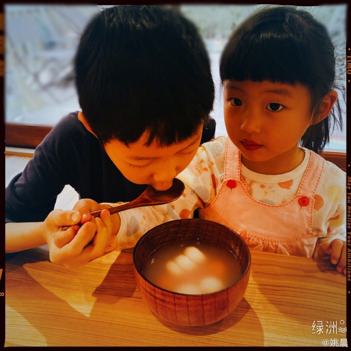 新浪娱乐讯 4月8日晚,姚晨在绿洲晒出一双儿女享用美食的萌照,写道:“排排坐,吃粿粿。”照片中姚晨儿子正撅着小嘴吸溜着粿粿,女儿则瞪着圆圆的大眼睛,表情十分呆萌。