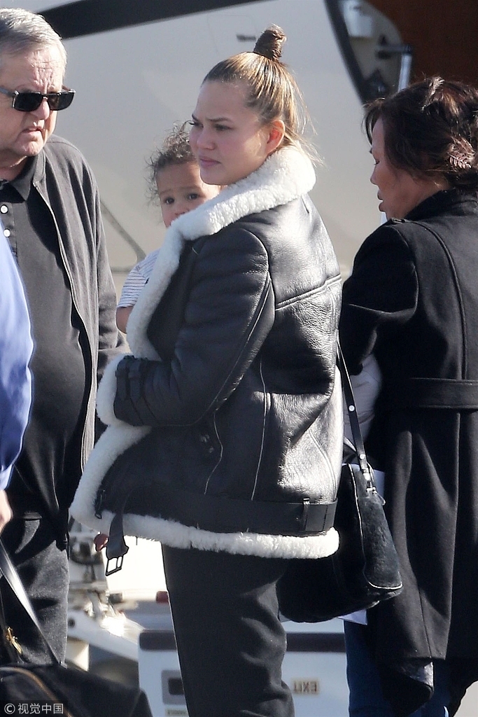 新浪娱乐讯 当地时间2017年12月22日,洛杉矶,克莉茜·泰根(Chrissy Teigen)和老公约翰·传奇(John Legend)乘坐私人飞机,克莉茜·泰根怀二胎依旧抱着大女儿辣妈范十足,一家人下飞机后离开心情不错。