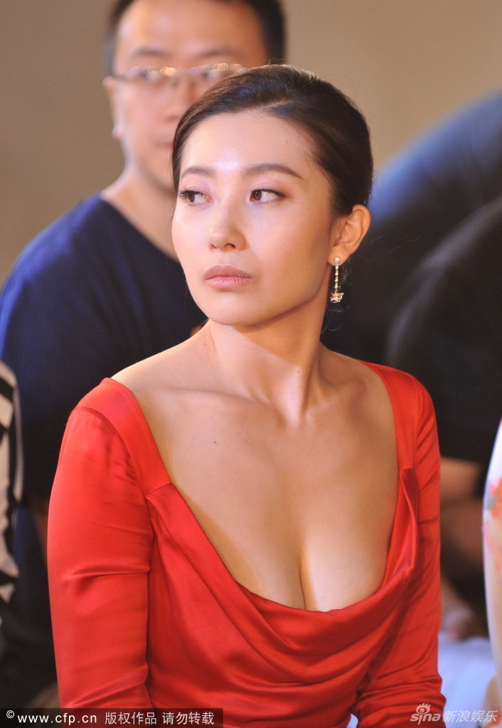 组图:章子怡嫂子殷旭亮相 穿低胸装秀事业线
