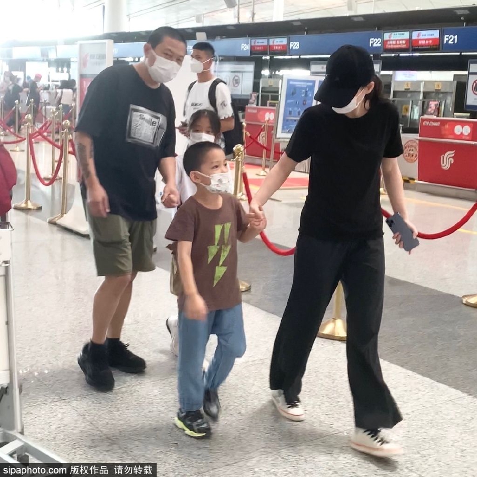 梅婷一家四口现身首都机场。