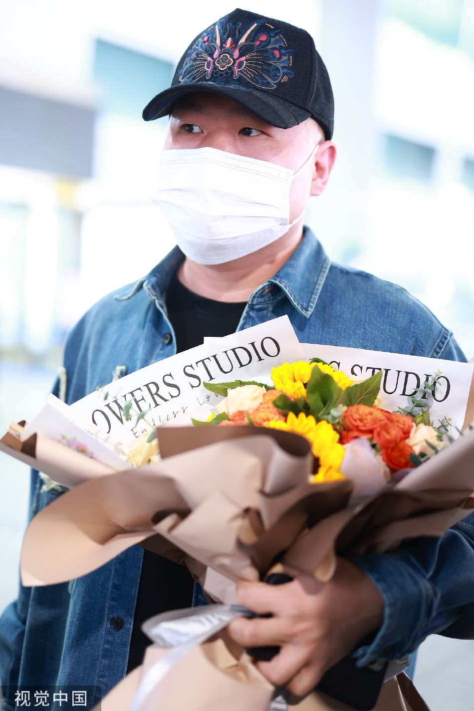 新浪娱乐讯 24日,岳云鹏抵达黄花机场。他身穿牛仔外套,头戴鸭舌帽,手捧鲜花,笑眼弯弯,十分可爱。(视觉中国/图)