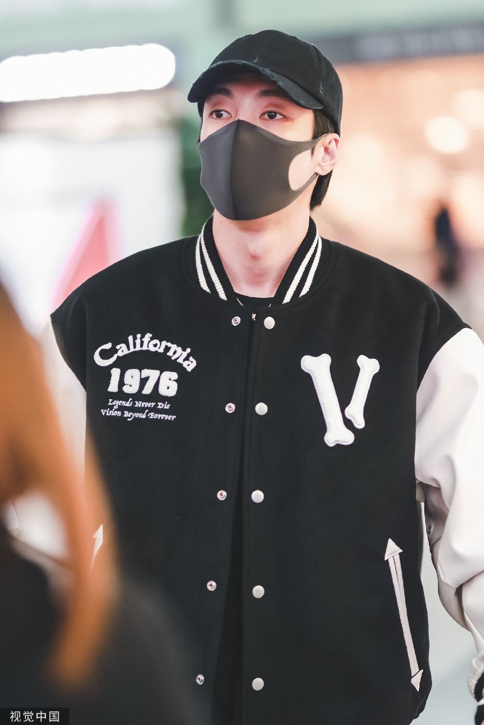 组图:高瀚宇穿棒球服造型亮相机场 戴棒球帽宽肩长腿比例好