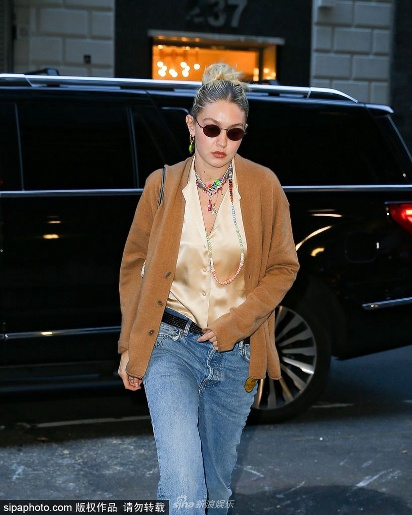 组图:吉吉-哈迪德休闲叠穿造型出街 戴墨镜时髦洒脱超有范儿