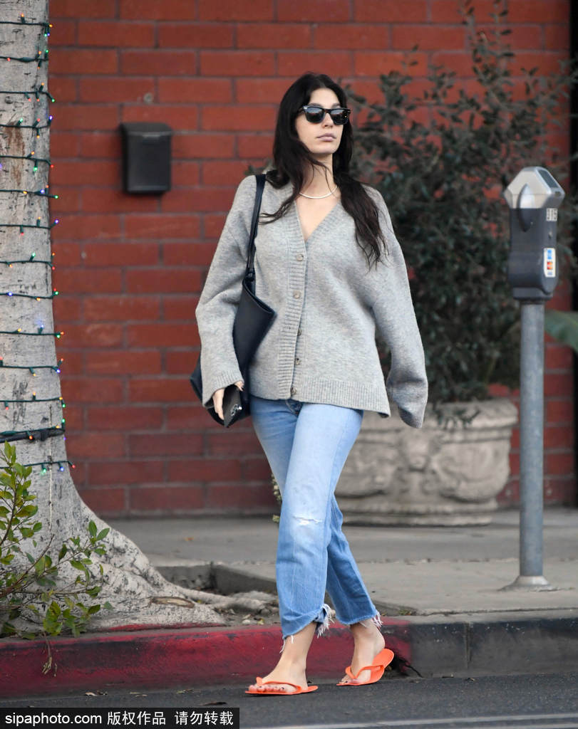 新浪娱乐讯 当地时间2022年11月30日,美国洛杉矶,小李子前女友卡米拉·莫罗(Camila Morrone)素颜墨镜遮面,穿灰色针织外套搭配牛仔裤,脚踩人字拖现身街头。(sipa/图)