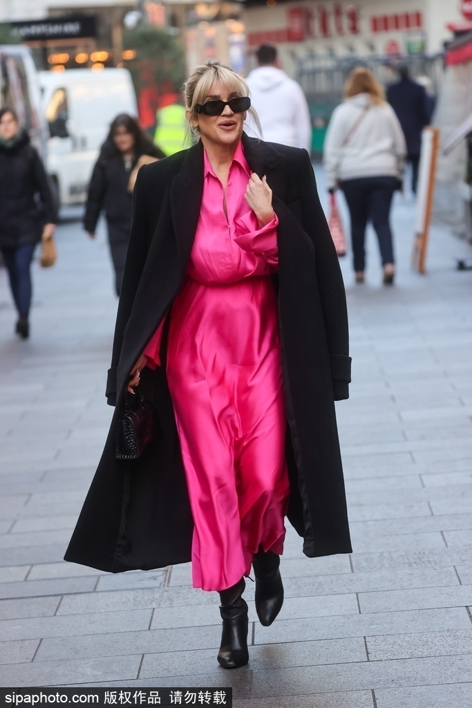 新浪娱乐讯 当地时间2022年12月8日,英国伦敦,女星阿什利罗伯茨(Ashley Roberts)穿一袭艳粉色连衣裙搭配黑色大衣现身街头,美艳抢眼气场不减。(sipa/图)