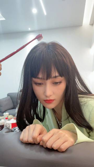 组图:张馨予戴齐刘海假发COS猫咪 等待牙刷刷额头呆萌可爱