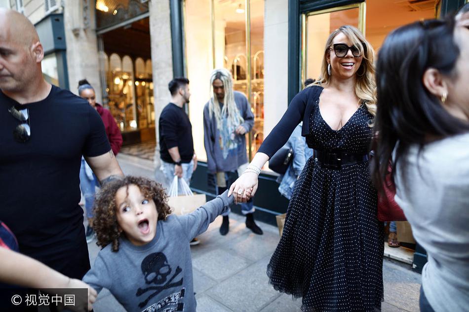 玛丽亚·凯莉(Mariah Carey)带着两个孩子外出逛街,她身穿黑色深V裙性感身材火辣吸睛