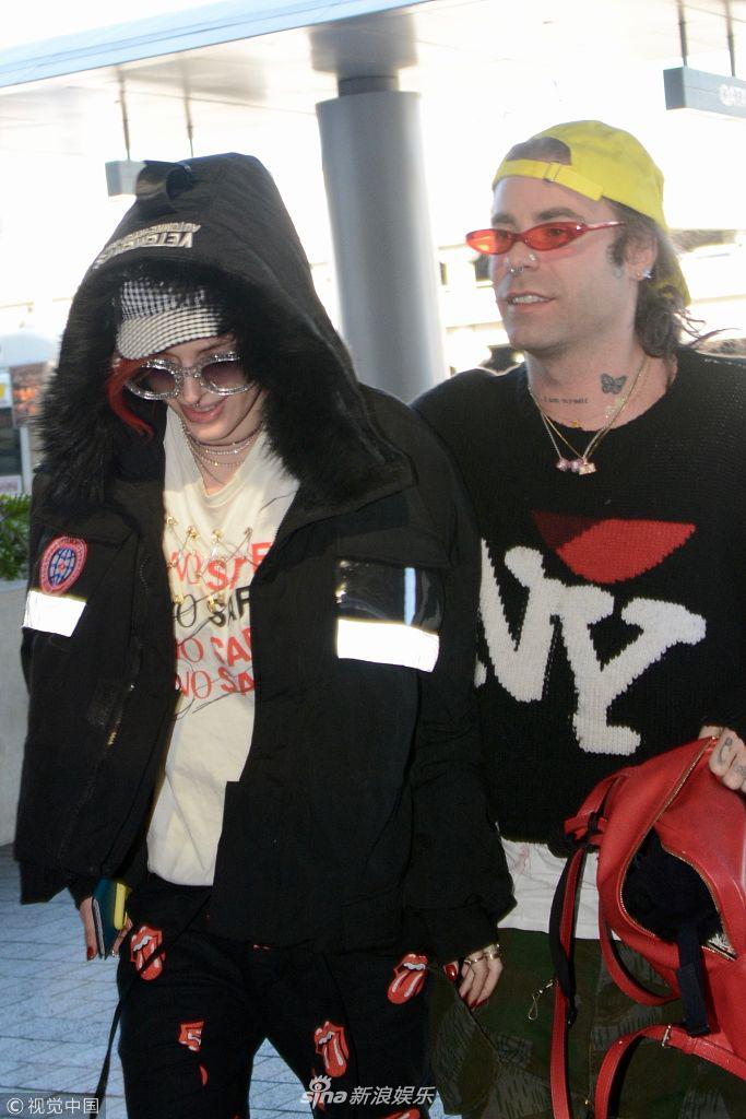 新浪娱乐讯 当地时间2018年2月25日,美国洛杉矶,贝拉·索恩与男友Mod Sun现身机场,贝拉·索恩戴着鼻环和夸张的镶钻眼镜,朋克范十足,一路获男友搂肩在机场狂撒狗粮。