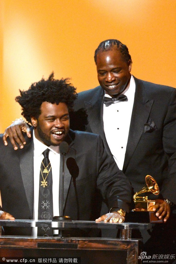 新浪娱乐讯 新浪娱乐讯 北京时间1月27日早晨,第56届格莱美音乐颁奖礼洛杉矶举行。麦当娜、蕾哈娜、泰勒-斯威夫特等明星出席。图为《Pusher Love Girl》获最佳R&B歌曲。
