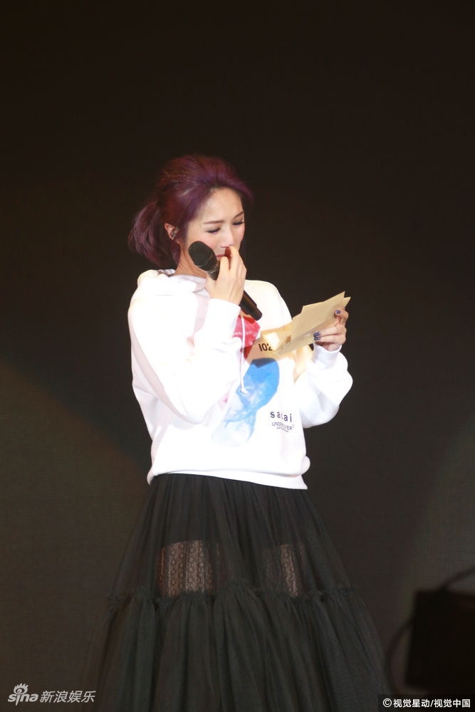 新浪娱乐讯 杨千嬅在湾仔会展举行拉阔音乐会,老公丁子高、林夕、林欣彤、苏丽珊等人到场支持,而王菀之、吴业坤、陈柏宇等歌手则担任表演嘉宾,翻唱杨千嬅的歌曲。杨千嬅在台上读出来自居荷兰歌迷的信时一度落泪,杨千嬅直言彩排的时候没有人跟她提过,她没有想过有这一个环节,所以读信时特别感动,同时希望该歌迷早日康复。(TUNGSTAR/图)