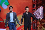 组图:邓超佟大为亮相东方春晚 拿编织袋走秀
