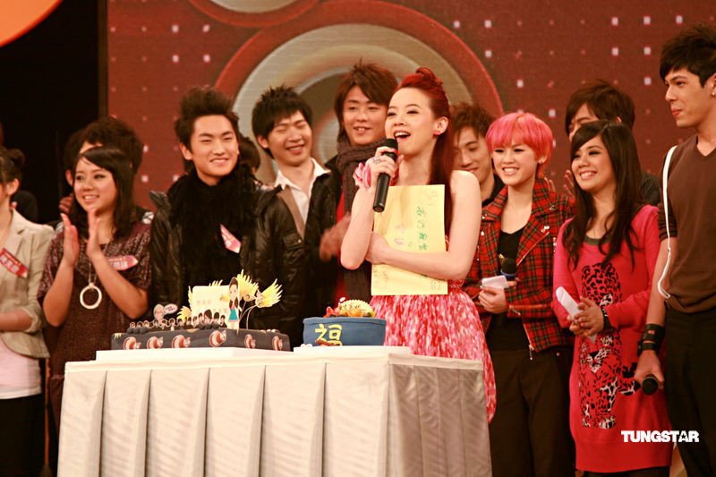 新浪娱乐讯 2月21日,亚洲电视全力打造的人气选秀节目《亚洲星光大道2》进行第九、十集录像,适逢主持曾宝仪生日,大会特别安排一众星光一班及星光二班与曾宝仪进行切蛋糕仪式庆祝。