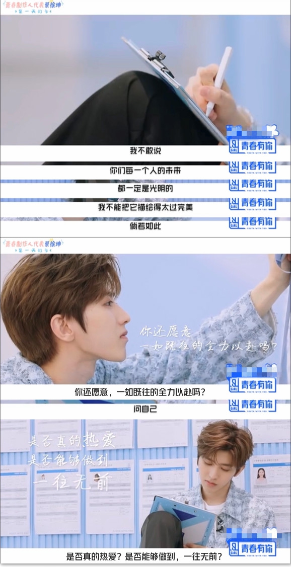 新浪娱乐讯 近日,《青春有你2》释出一组剧照,蔡徐坤回忆两年前参加《偶像练习生》的经历引发回忆杀,写信鼓励训练生超暖心。