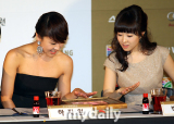 图文:韩国青龙奖按手印--河智苑朴宝英耳语