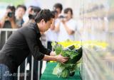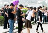 图文:《大地震》剧组唐山祭奠-王中磊献上鲜花